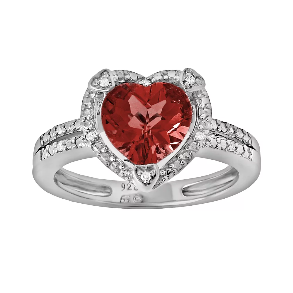 Love at first sight. A heart-cut garnet stone gives this ring a breathtaking glow. You’ll radiate romance every time you wear this sterling silver ring.