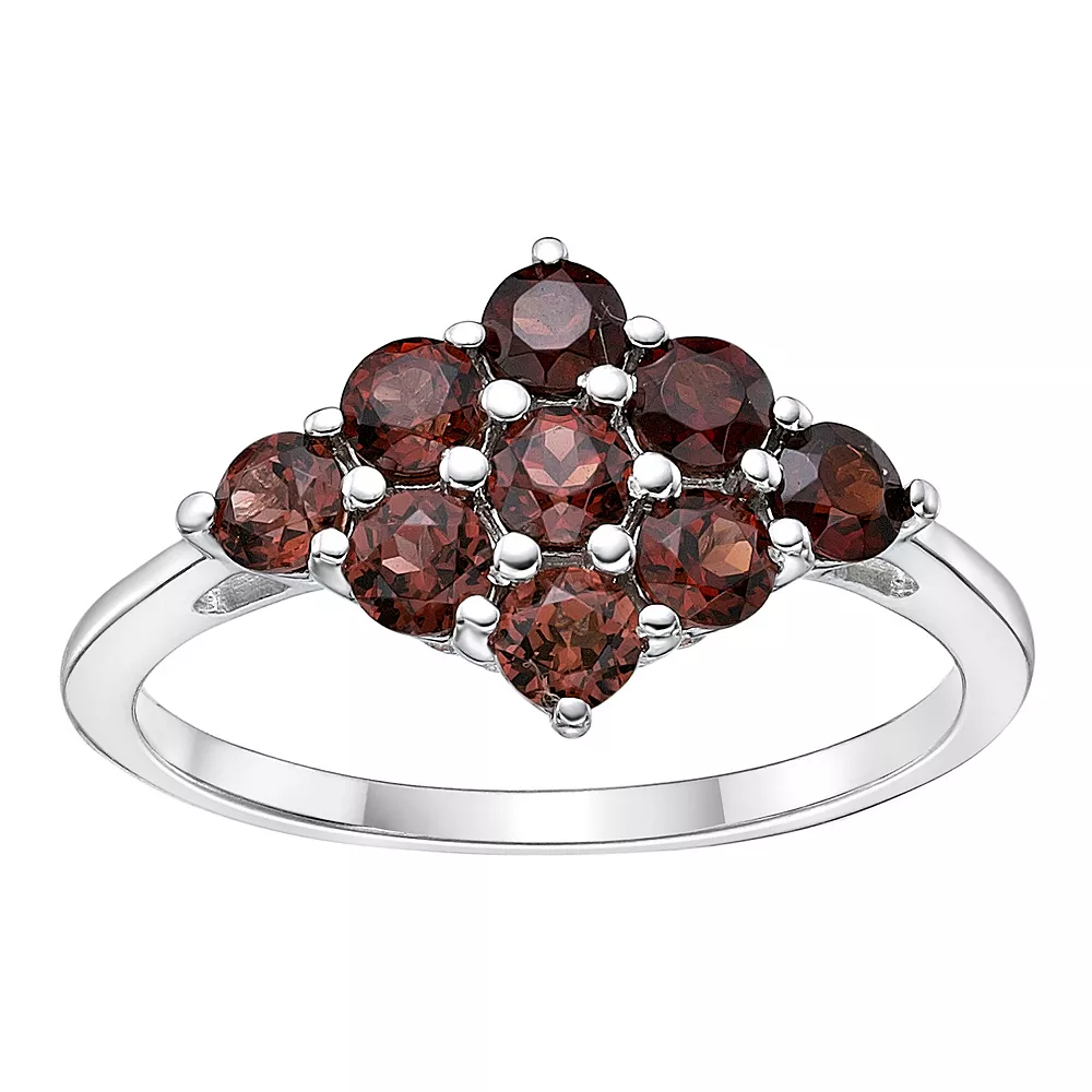 This sterling silver ring is adorned with shimmering garnets for an accessory you’ll love.