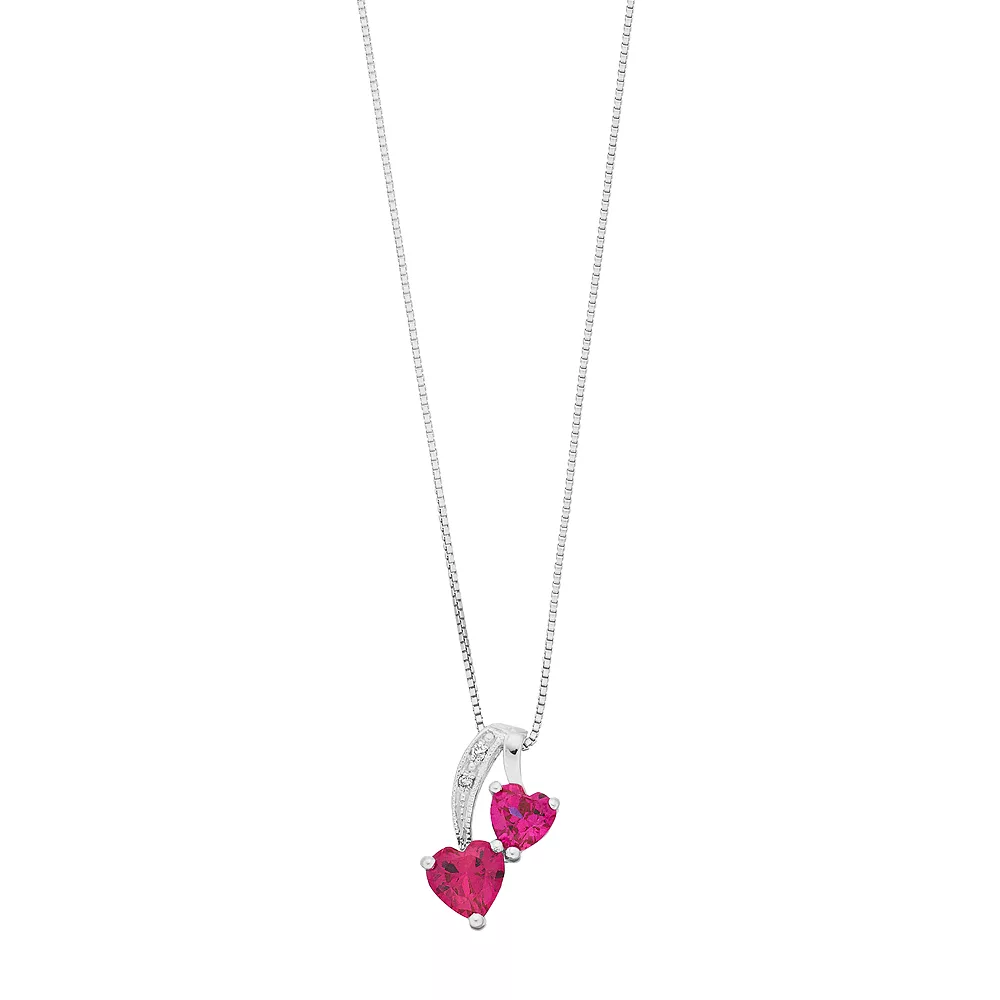 Featuring a dazzling pair of heart-shaped center stones and diamond accents, this sterling silver pendant necklace is a charm charming finishing touch to your ensembles.
