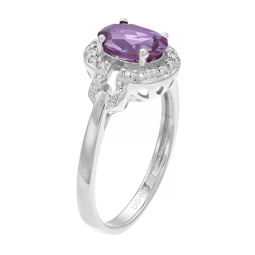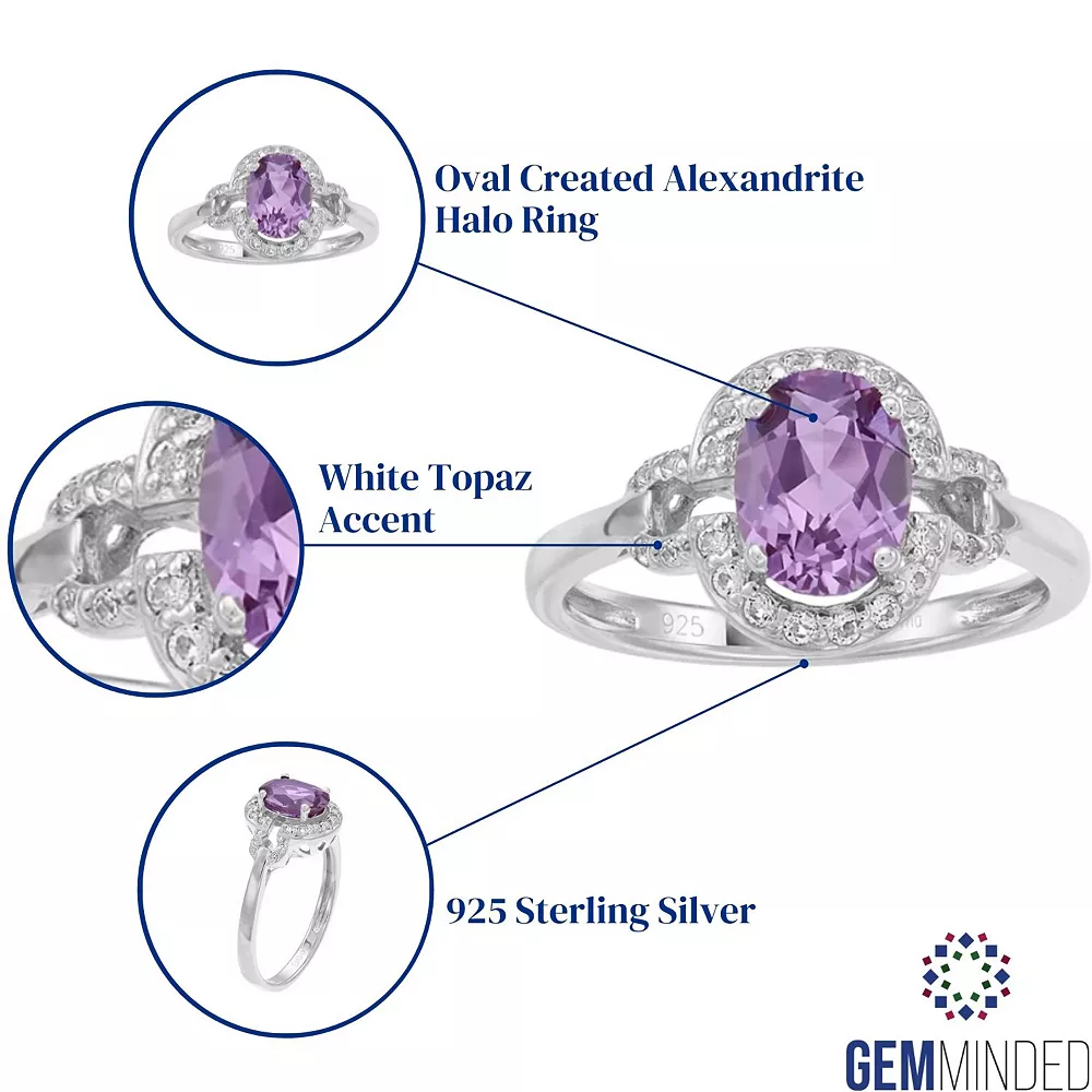 Add a colorful accent to your look with this lab-created alexandrite and white topaz halo ring.