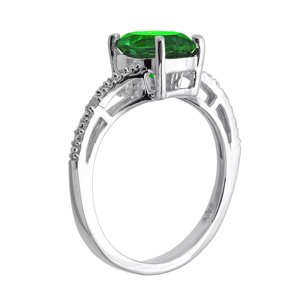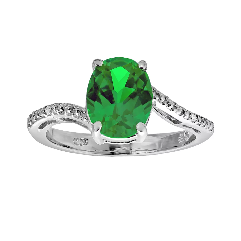 A lab-created emerald and diamond accents adorn this sterling silver ring for understated elegance.