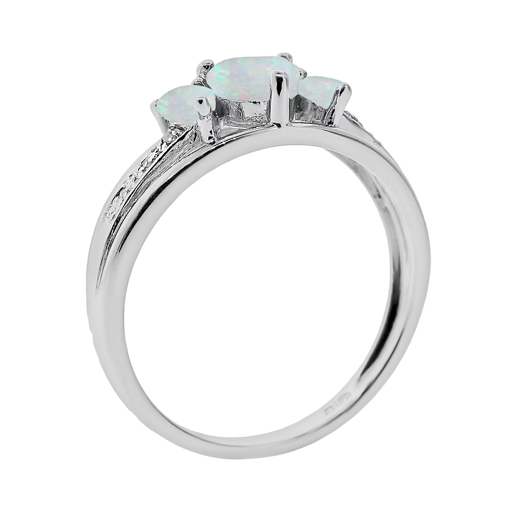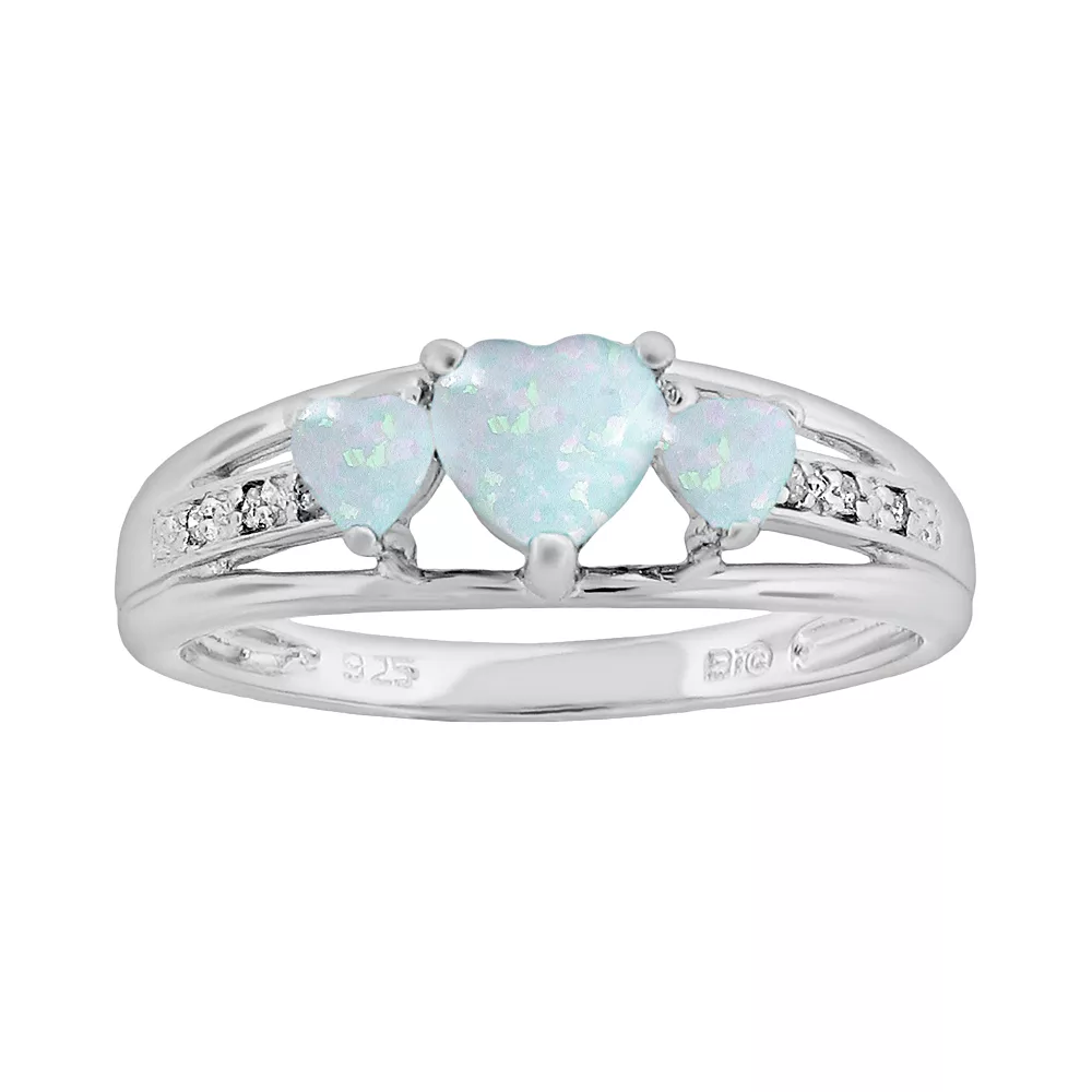 Radiant romance. Three heart-cut, lab-created opal stones illuminate this sterling silver ring. Pair this beautiful ring with a new pendant for a look you’re sure to love.
