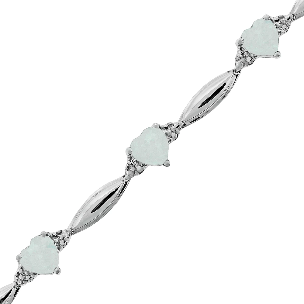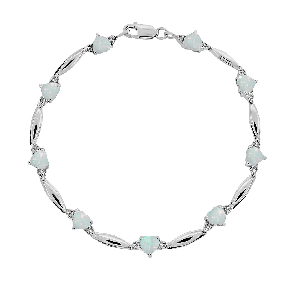 Wrapped in romance. Adorn your wrist with this sterling silver bracelet. Heart-cut, lab-created opal stones and diamond accents give it a lovely glow.