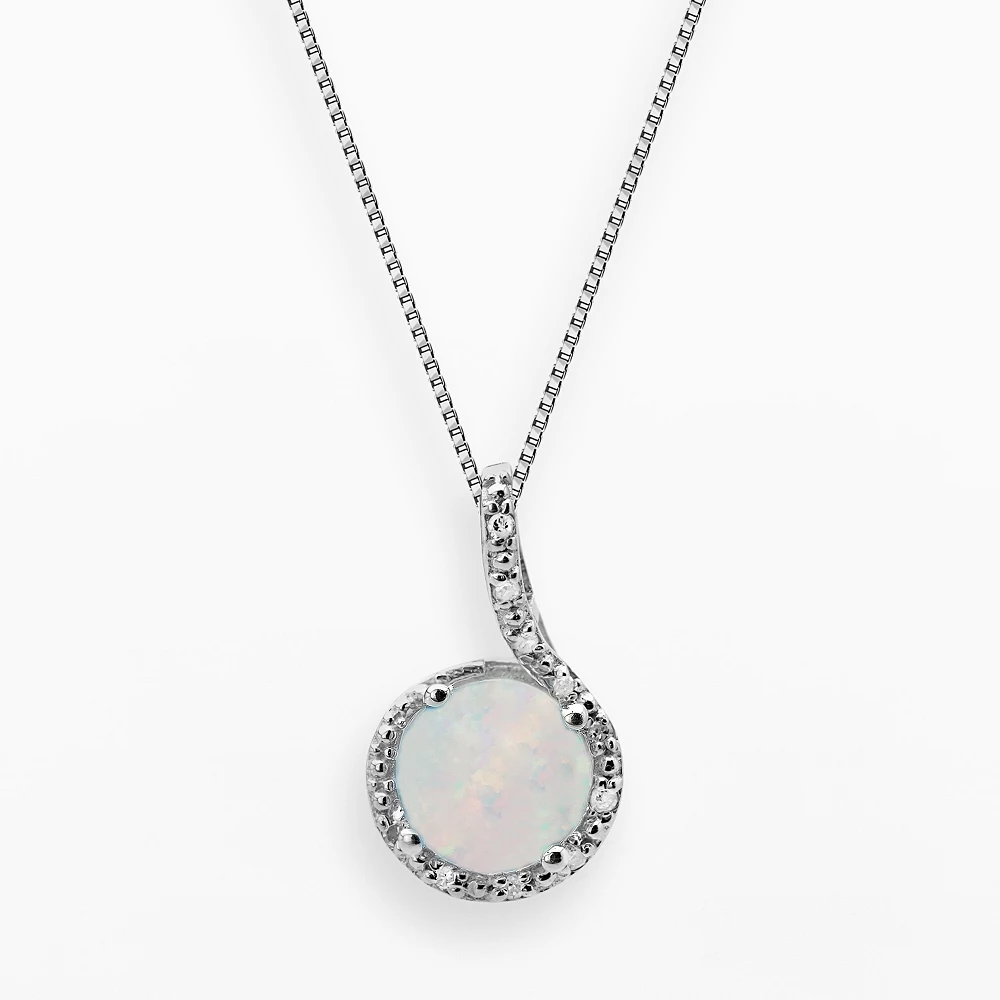 Add a lovely hint of sparkle to your wardrobe with this beautiful lab-created opal and diamond accent pendant.