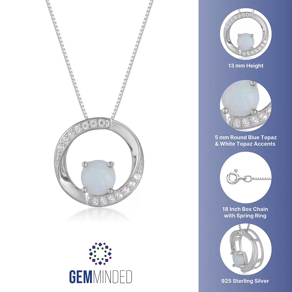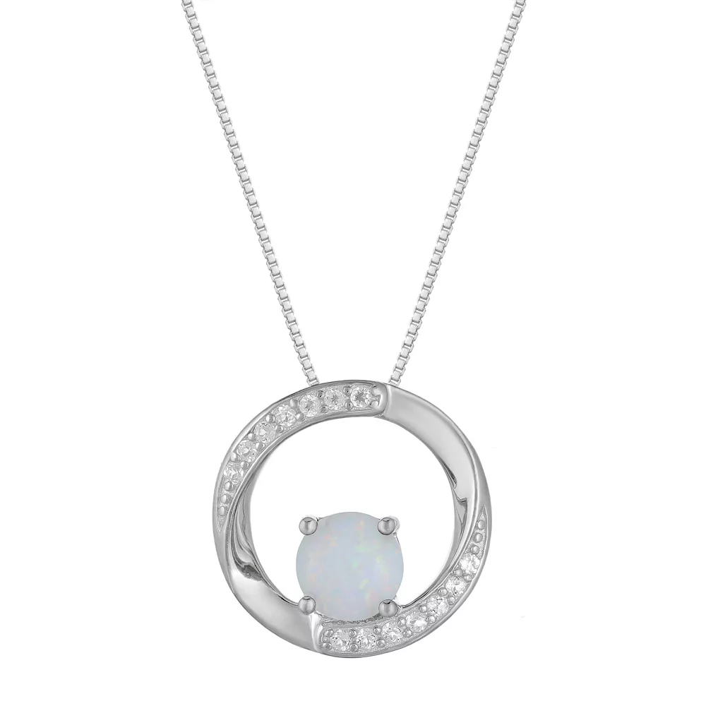 This sterling silver circle pendant necklace showcases dazzling lab-created opal and lab-created white sapphire for a piece that you’re sure to love.
