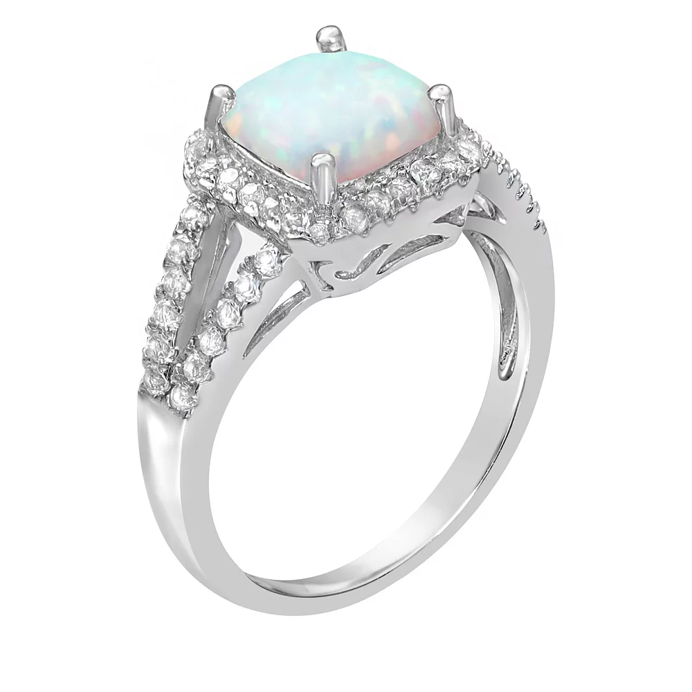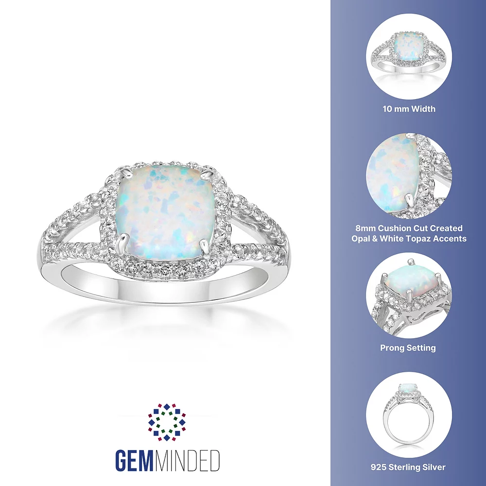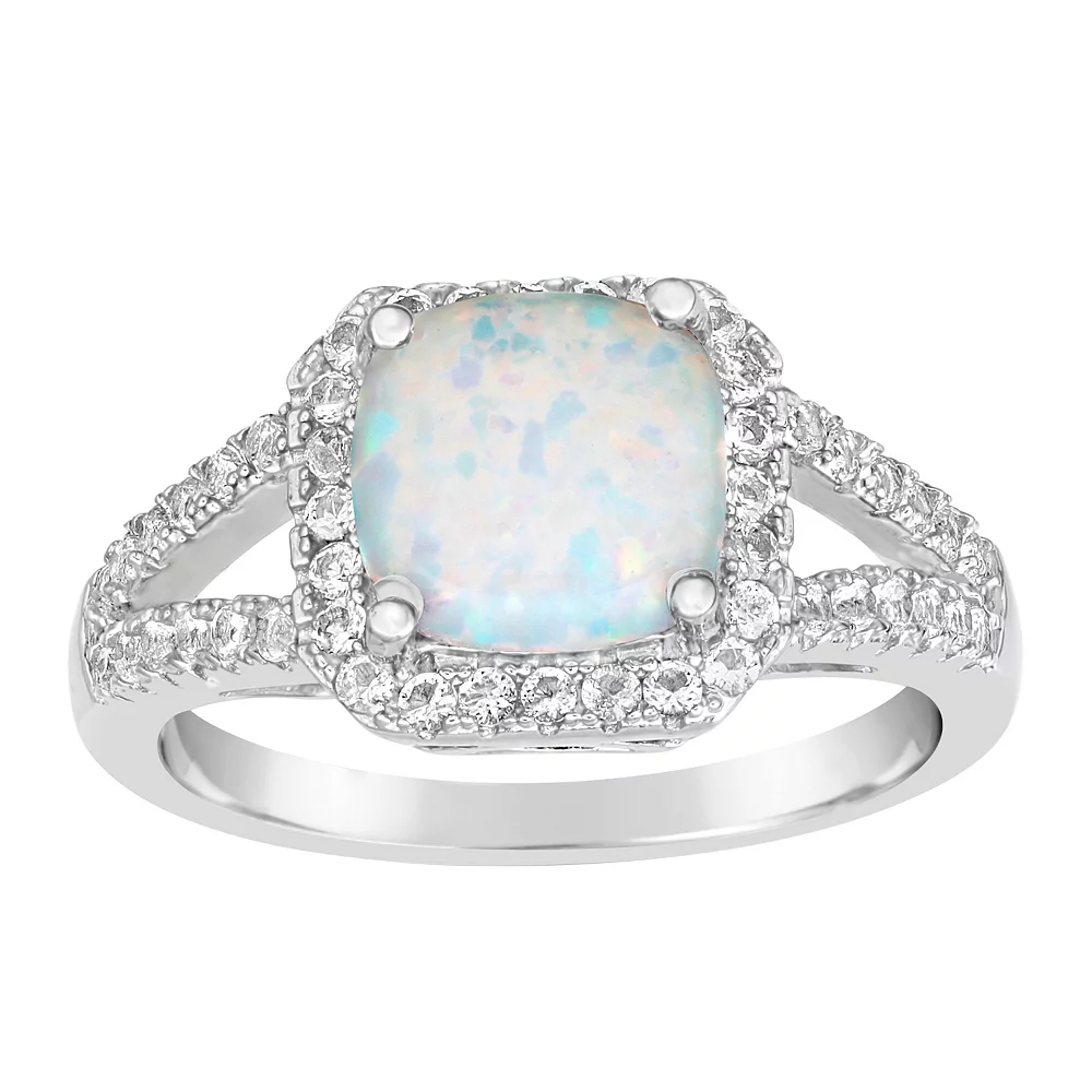 Put the final touch on your look with this beautiful lab-created opal ring adorned with a shimmering white topaz halo.