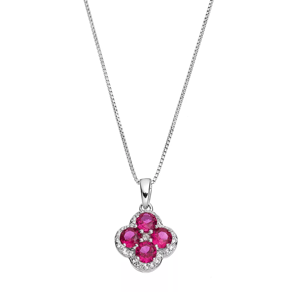 Featuring a floral pendant adorned with lab-created ruby and genuine white topaz stones, this necklace gives your outfit graceful beauty. Comes in a gift box.