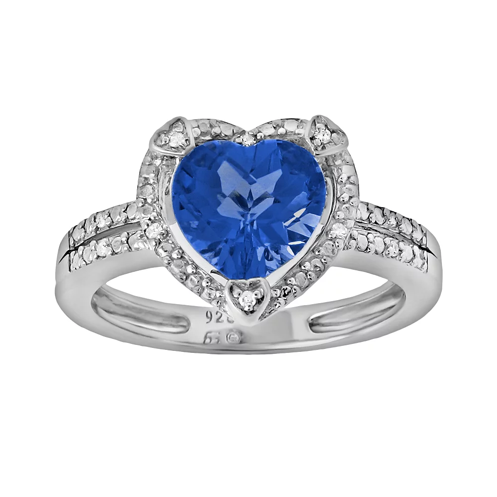 Love at first sight. A heart-cut, lab-created sapphire stone gives this ring a breathtaking glow. You’ll radiate romance every time you wear this sterling silver ring.