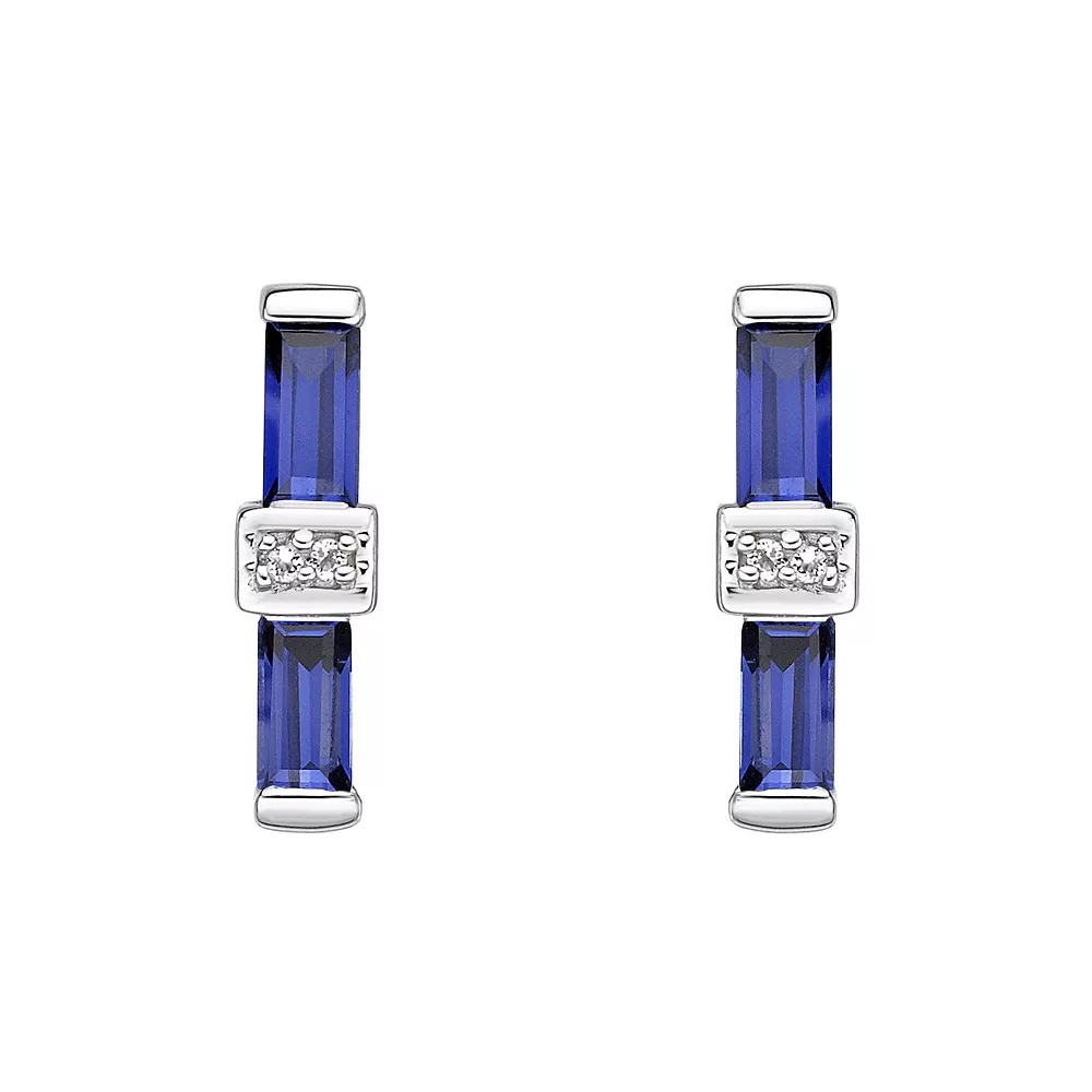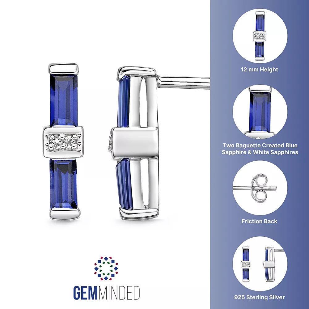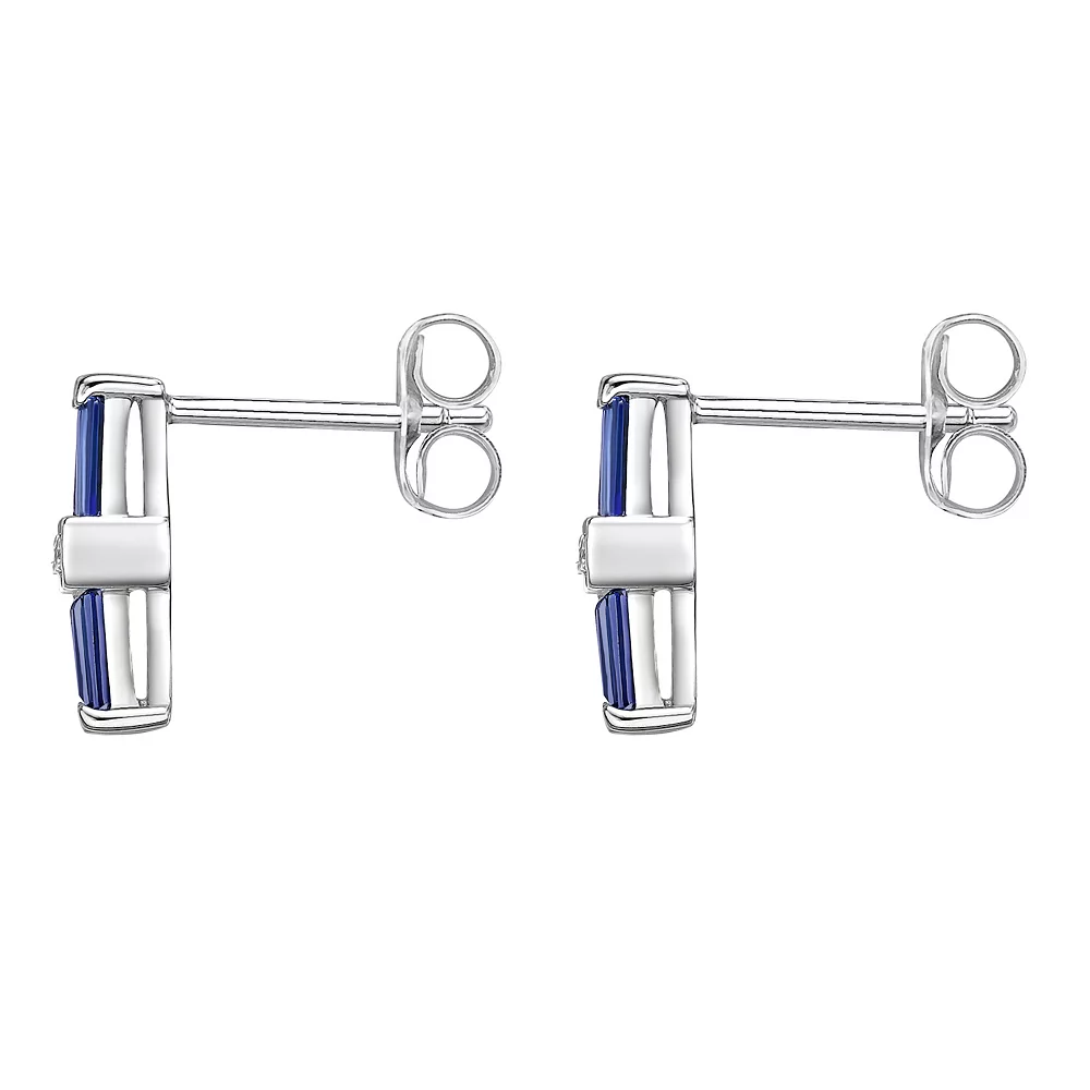 This pair of sterling silver bar stud earrings showcases lab-created sapphire and lab-created white sapphires for a dazzling look you’ll love.