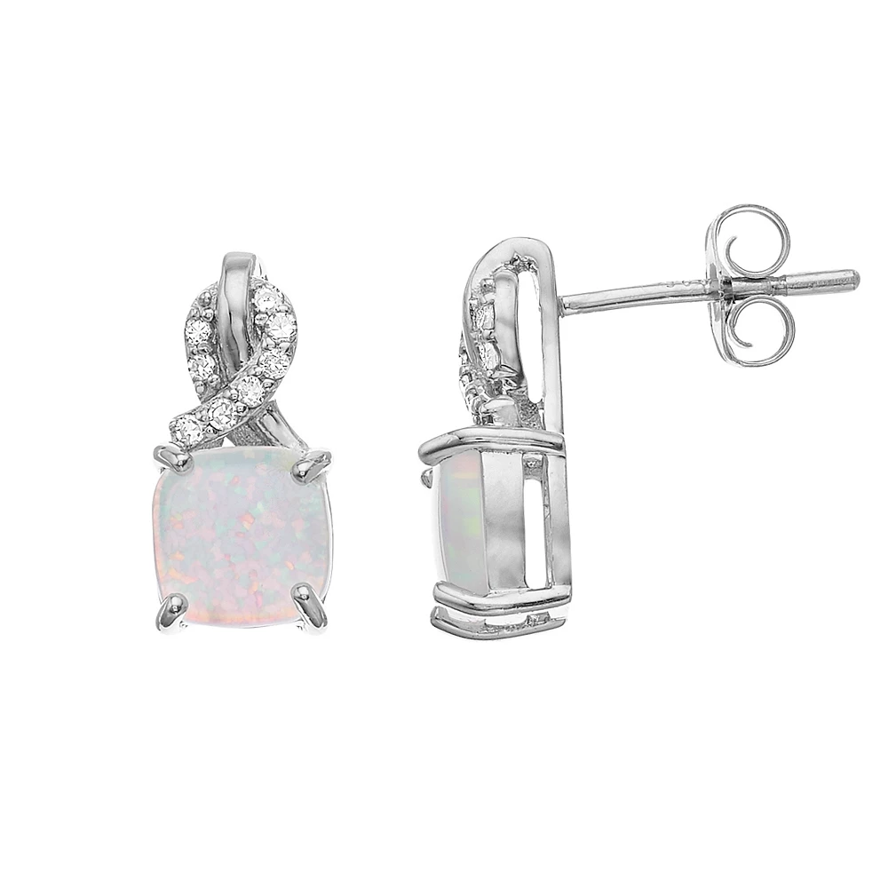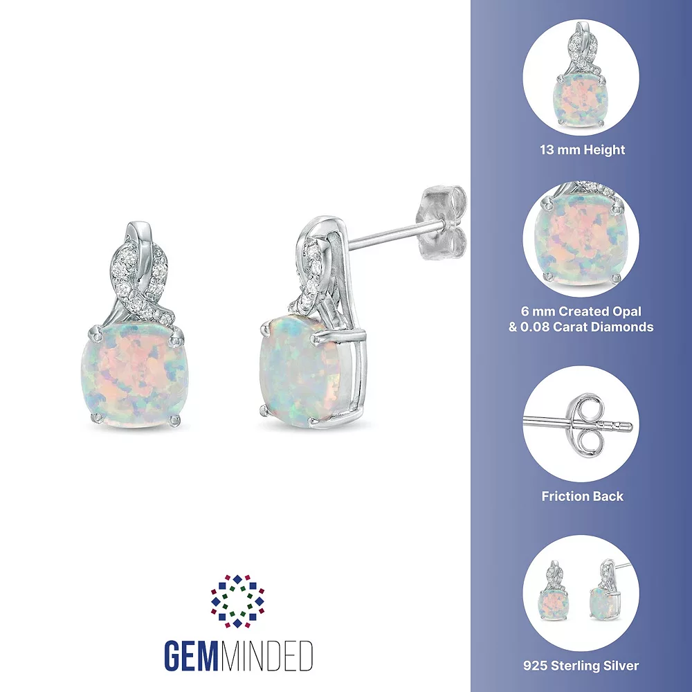 Decorated with lab-created white opal gemstones, and glittering diamond accents, these sterling silver teardrop earrings are a captivating pair.