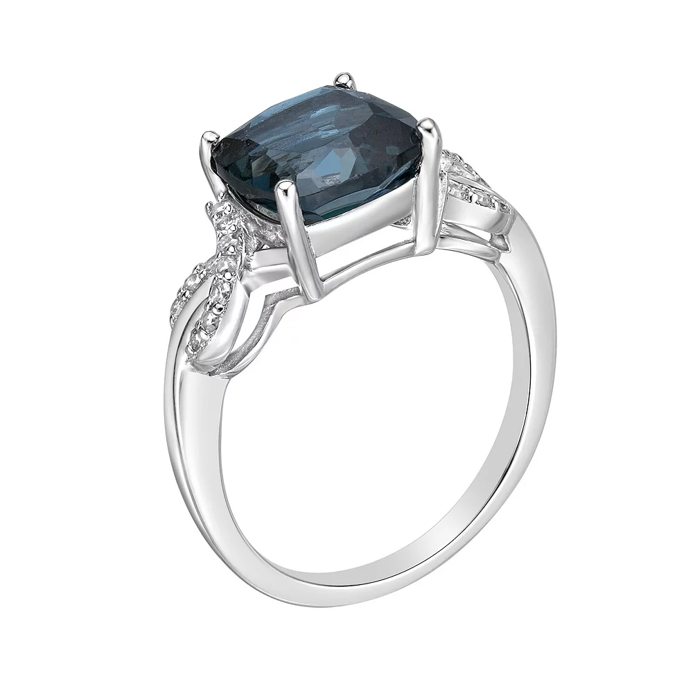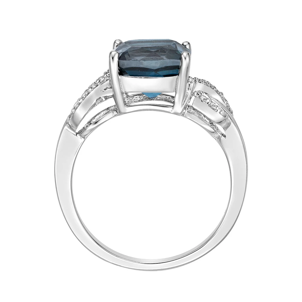Put the final touch on your look with this beautiful London blue topaz ring adorned with shimmering diamonds.
