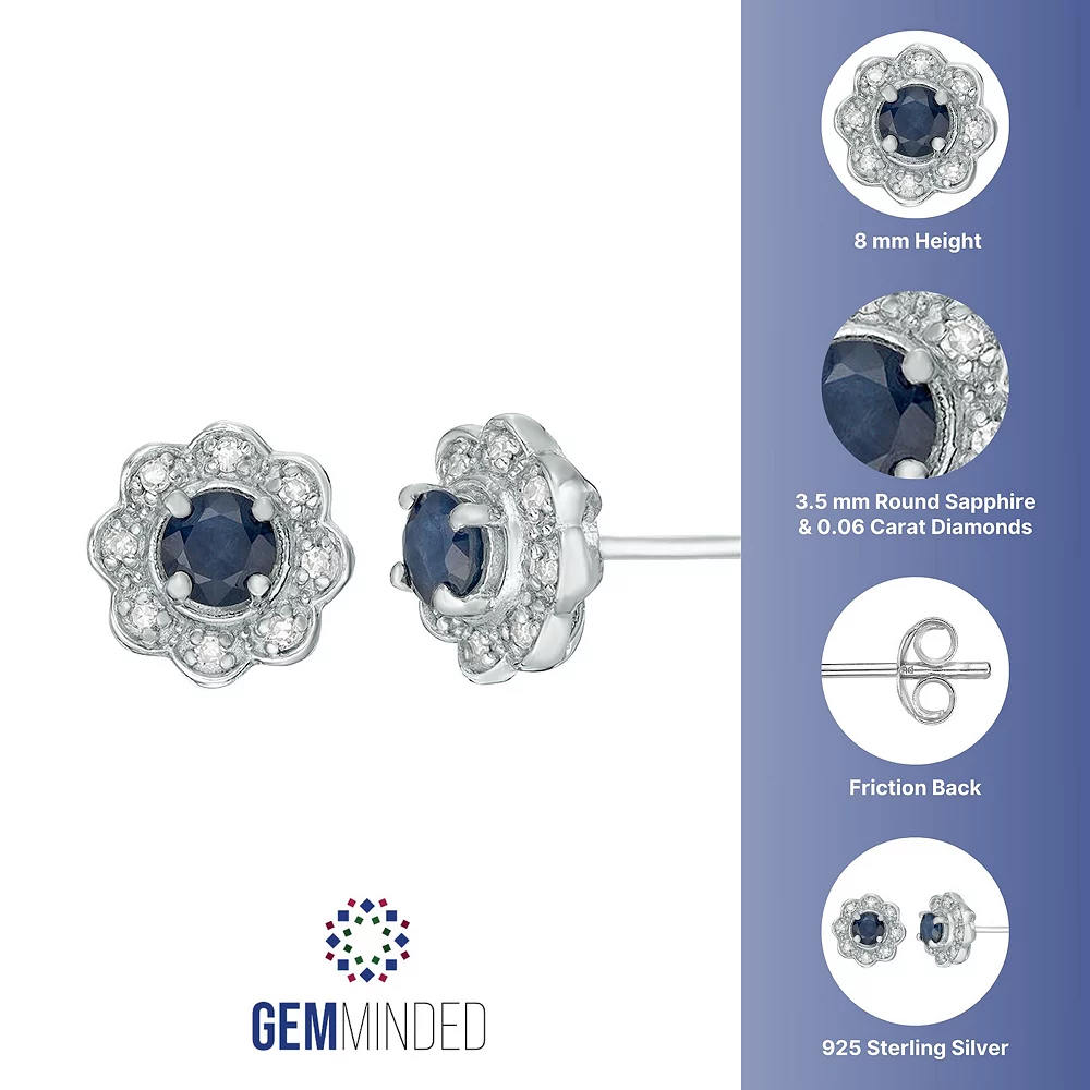 These gorgeous sterling silver sapphire and diamond accent stud earrings are the perfect way to finish any outfit.