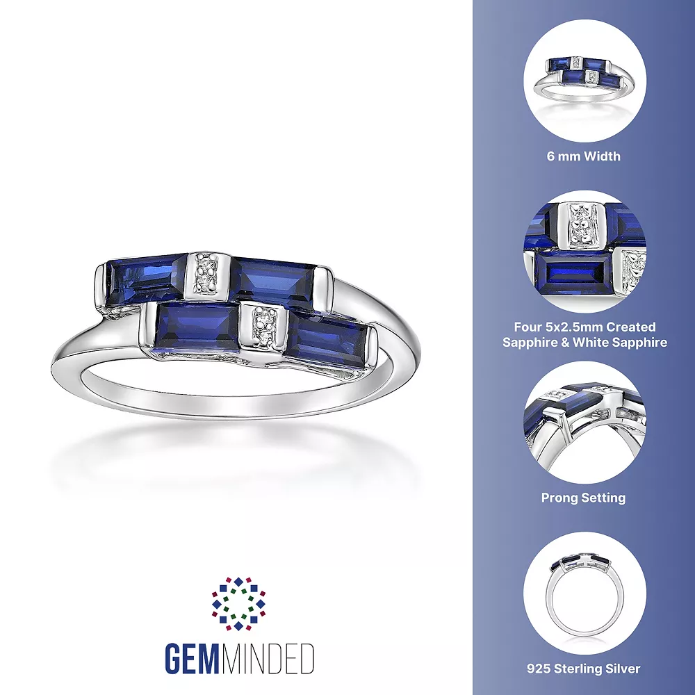 Accessorize any of your favorite looks with this gorgeous sterling silver lab-created sapphire and lab-created white sapphire bypass ring.