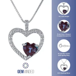Gemminded Sterling Silver Lab-Created Alexandrite & Diamond Accent Double Heart Pendant Necklace