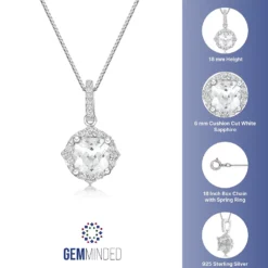 Gemminded Sterling Silver Lab-Created White Sapphire Accent & Lab-Created Sapphire Pendant Necklace